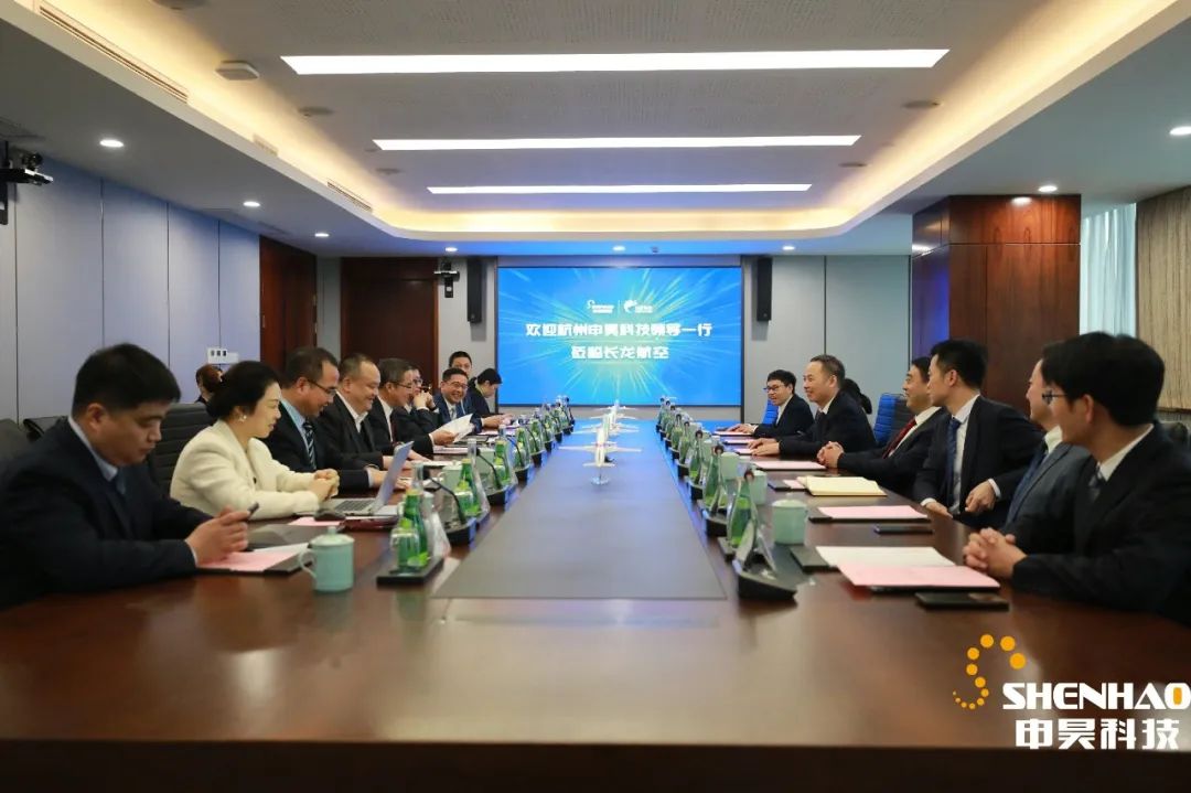 3月29日,杭州申昊科技股份有限公司(以下簡稱“申昊科技”)與浙江長龍航空有限公司(以下簡稱“長龍航空”)在杭州長龍航空總部舉行戰略合作簽約儀式。長龍航空董事長劉啟宏,申昊科技董事長陳如申出席儀式并見證簽約,申昊科技與長龍航空派出代表簽署協議。