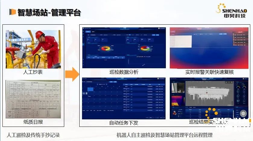 申昊科技一直致力于設(shè)備檢測及故障診斷,為工業(yè)設(shè)備安全運行及智能化運維提供綜合解決方案。申昊科技研發(fā)的防爆型輪式巡檢機器人以及無人機巡檢系統(tǒng)在油氣行業(yè)進行了一系列的創(chuàng)新和探索,不僅提高了生產(chǎn)效率、而且提升了作業(yè)安全系數(shù),為客戶無人或少人值守和智能化管理提供有效的檢測、監(jiān)測手段。